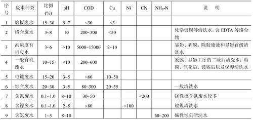 表1 印制電路板廢水水質(zhì)水量分類表 (單位:mg/L,pH 除外)