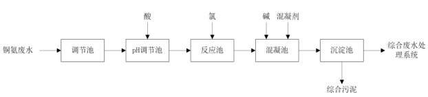 圖3 銅氨廢水折點加氯法的預(yù)處理工藝流程