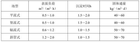 5)沉淀池的設(shè)計參數(shù)應(yīng)根據(jù)廢水處理試驗數(shù)據(jù)或參照類似廢水處理的沉淀池運行數(shù)據(jù)確定;當沒有試驗條件和缺乏有關(guān)資料時,設(shè)計參數(shù)可參考表 2確定;
