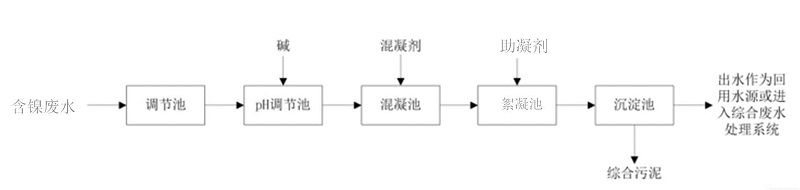 圖9 含鎳廢水化學(xué)沉淀法預(yù)處理基本處理流程