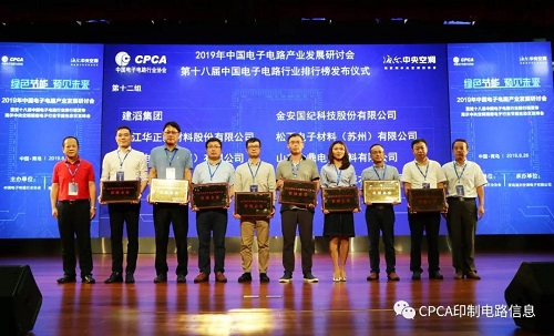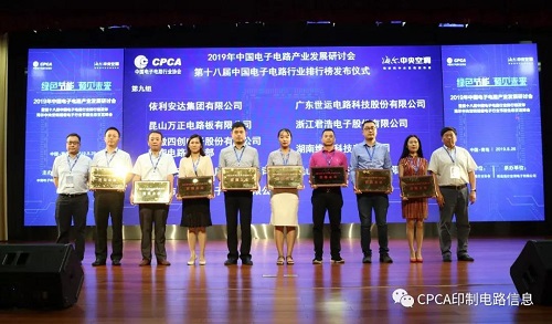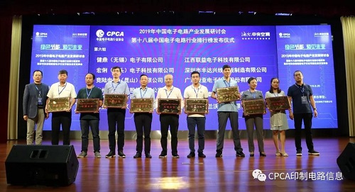 2019年第十八屆中國(guó)電子電路行業(yè)排行榜頒獎(jiǎng)典禮盛大舉行
